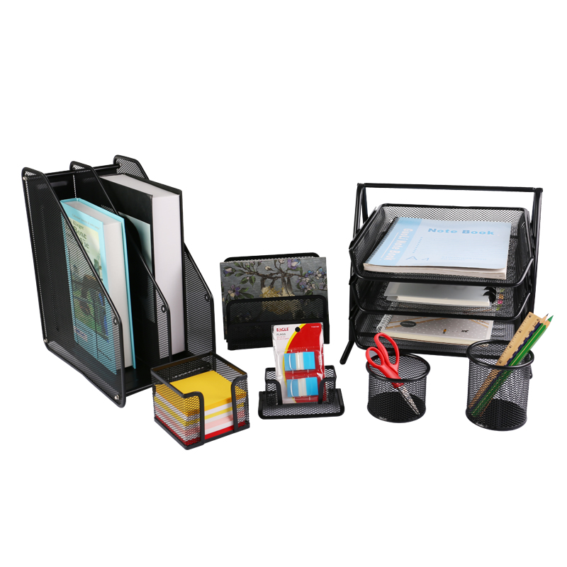 • 3-tier Desktop Tray; 2-case Knocked-Down Magazine Holder; Letter Holder; Memo Holder; Pen Holder; Clip Cup; Business Card Holder