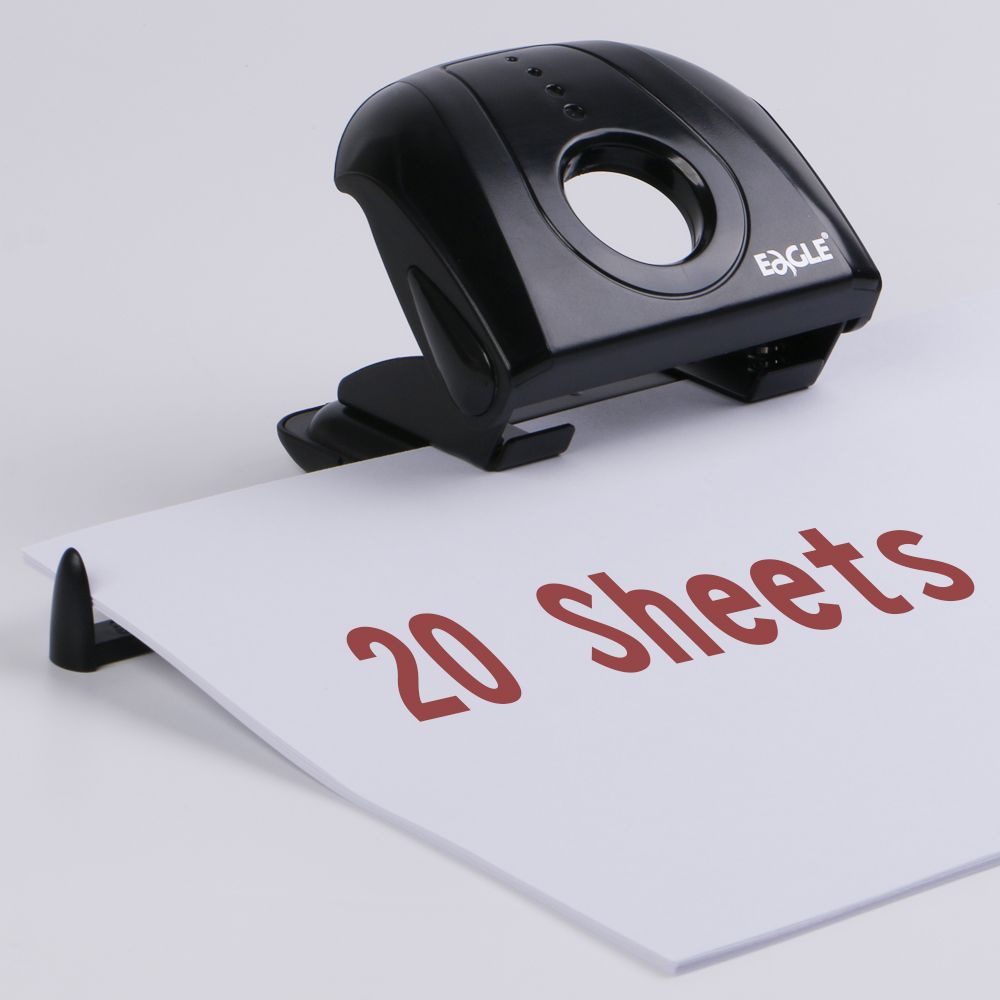 EAGLE Hole Punch Manual Paper Puncher Plastic 2 Hole Paper Punch Office Desktop 20 Sheets 80mm Black P5180M